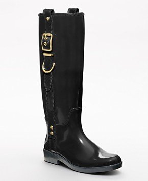 Weatherproof rubber with the chic look of a riding boot and distinctive custom hardware.