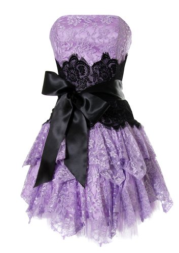 Best Price for Strapless Bustier Contrast Lace and Crinoline Ruffle Prom Mini Dress Junior Plus Size, Large, Lavender/Black With Special Pomotions Fast Shipping